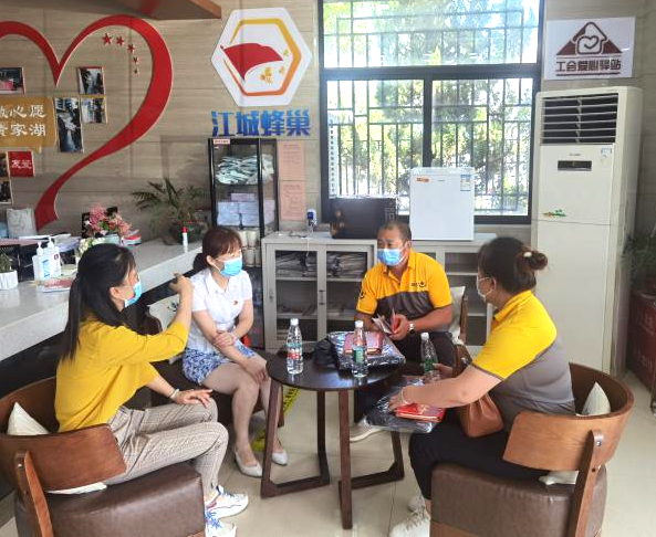 9月9日,青菱街道黄家湖社区召开九月支部主题党日活动,参会人员中,有两名穿着快递工作服的人员特别显眼,他们就是江城蜂巢“小蜜蜂”苏海涛和万霞。