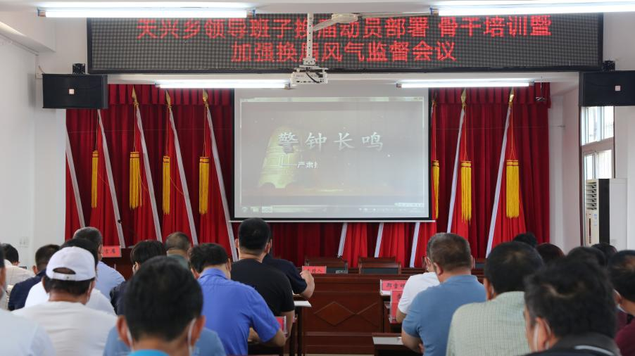 9月11日,洪山区天兴乡召开乡领导班子换届动员部署、骨干培训暨加强换届风气监督会。天兴乡党委书记、乡长及党委领导班子成员、机关、绿岛小区、村“两委”全体人员,城管中队、派出所、司法所、卫生院负责人参加会议。