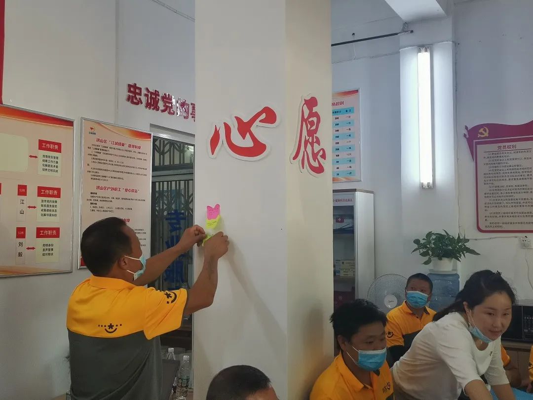 除了爱心义诊、暖心慰问,当天还开展了主题讲座、心理疏导、倾听诉求等活动。在蜂巢驿站内,20名快递员现场填写了心愿卡。“做好勤劳的‘小蜜蜂’。”快递员包春鹏许下心愿后,对洪山区政府的关心和帮助表示诚挚的感谢,他倡议快递企业把党委政府的关怀转化到实际工作中,当好人民幸福生活的守护者和创造者。