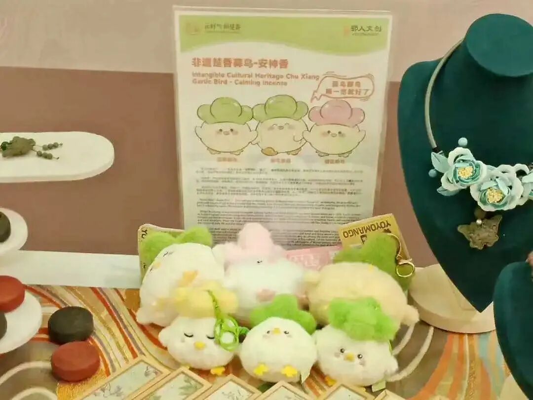 此次楚香“出海”不仅展示传统香文化,还带来融合现代美学的联名新品,展现洪山作为“大学之城”的青春创造力。其中,与武汉本土文创IP“蒜鸟”联名的安神香,巧妙融汇武汉方言中的豁达趣味与香韵的宁神功效。