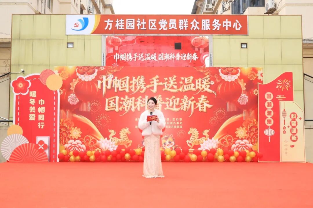 1月16日下午,洪山区“巾帼携手送温暖 国潮科普迎新春”活动在珞南街道方桂园社区举行,百余名环卫工、快递员、外卖配送员代表齐聚一堂,在浓浓年味中收到暖心礼包与健康关怀。