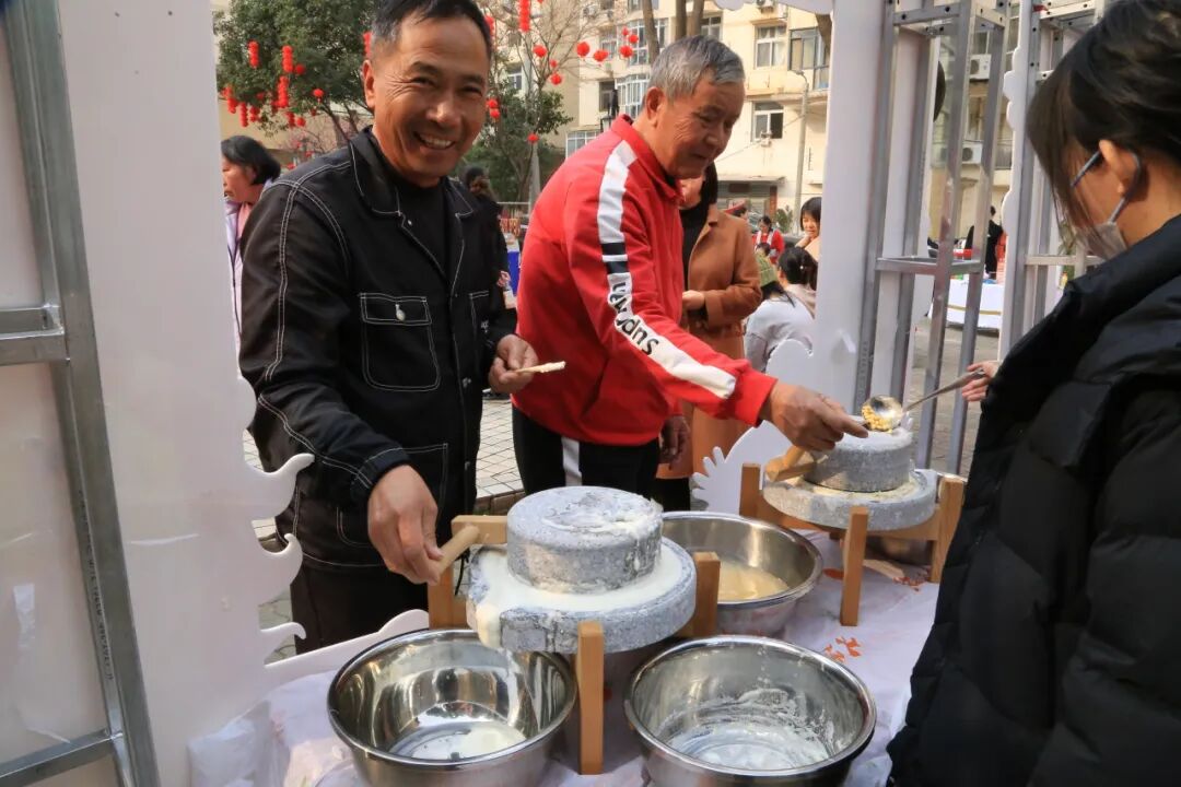 在“民俗非遗互动区”,打糍粑、磨豆腐、写春联等活动吸引大家踊跃参与。“一进广场就闻到顶糕香,看到打糍粑的热闹场景,心里暖烘烘的。”一位环卫工人代表提到,社区设立的户外工作者驿站已成为她们的“暖心加油站”,累了能歇脚,渴了有热水,手机可以充电。她也呼吁市民共同维护城市环境,做好垃圾分类。