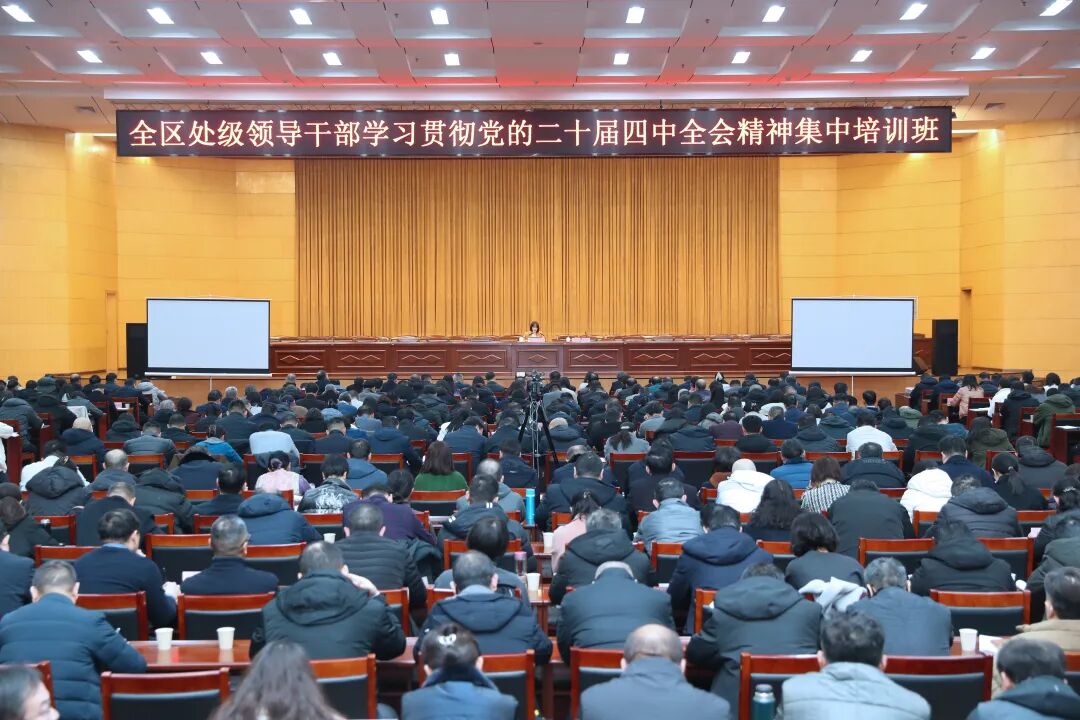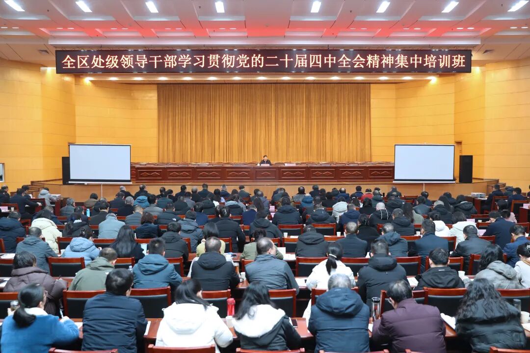1月24日,全区处级领导干部学习贯彻党的二十届四中全会精神集中培训班开班。区委书记严中兴作开班动员暨辅导报告。他强调,要深入学习贯彻党的二十届四中全会精神和习近平总书记考察湖北重要讲话精神,全面落实省委十二届十一次全会、市委十四届十二次全会和区委十二届十四次全会部署要求,进一步统一思想、提振精神,全面建设现代化大学之城。
