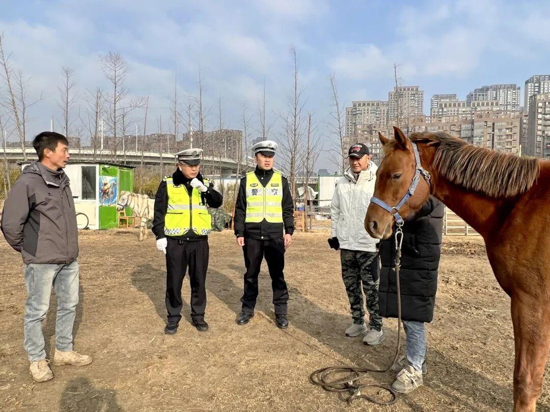 “不仅要化解眼前险情,更要根除长远隐患。”为从源头杜绝类似事件再次发生,2月3日、2月8日,一中队民警程考、刘钢两次主动上门走访该马场,开展安全隐患专项排查。针对围栏局部老化、看管流程不规范等问题,民警现场下达整改通知书,督促企业限期加固防护设施、加强人员培训,并建立“每日巡查+定期检查”的长效管理机制。企业负责人李某表示,这些措施及时堵塞了管理漏洞,也让他对今后规范经营更有信心。