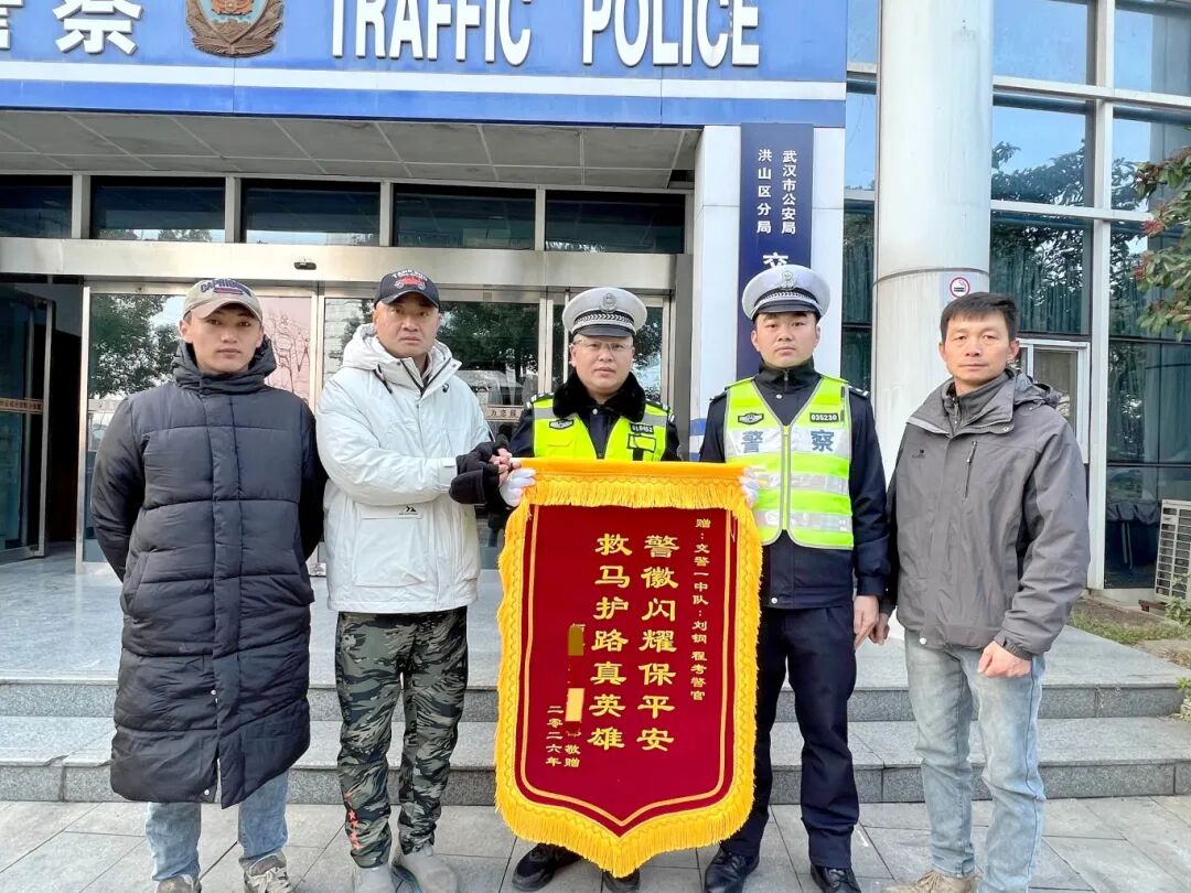 2月10日上午,某马场负责人李某将一面印有“警徽闪耀保平安 救马护路真英雄”的鲜红锦旗,专程送到武汉市公安局洪山区分局交通管理大队一中队民警手中。“交警不仅帮我们找回了马,还主动上门指导整改隐患,这下经营更踏实了!”李某连声道谢,对交警高效处置险情、主动护企安商的暖心举措表达由衷感激。