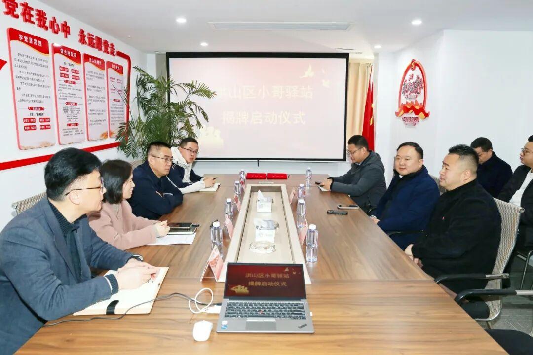 2月12日上午,洪山区洪山街道平安路6号门前洋溢着喜庆的气氛,随着红绸缓缓揭开,“洪山区小哥驿站”七个大字映入眼帘。这座由洪山区委组织部、区委社会工作部、区市场监督管理局联合推动建设的综合性服务阵地,即日起正式向全区新就业群体免费开放。