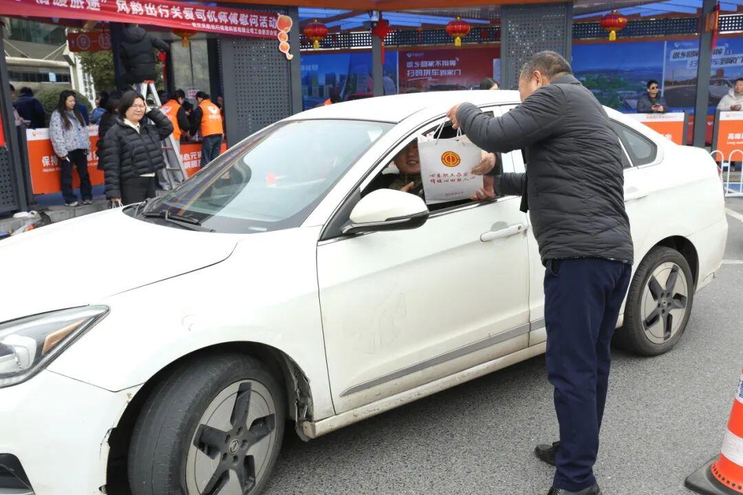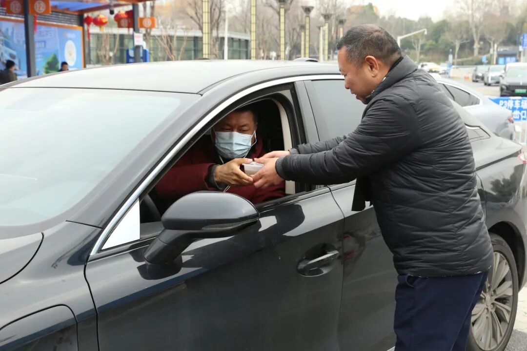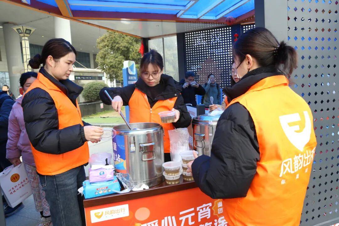 临近中午12点,正是网约车司机交接班、充电补能的高峰期。风韵出行的工作人员摆着“小摊”煮起桂花汤圆,区总工会和综管办工作人员一起端着汤圆、提着慰问品,穿梭在车辆之间,敲开一扇扇车窗,将这份惊喜送到司机师傅的手上。“这份工会慰问送给您,祝您新春愉快!”