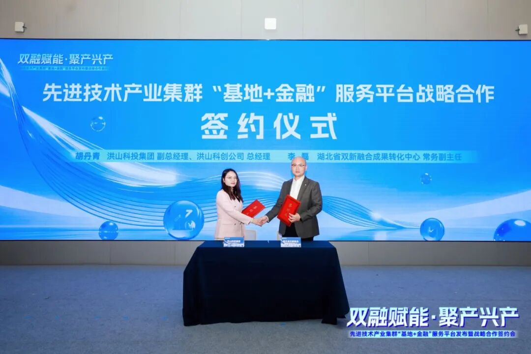 活动现场,洪山科投集团、洪山科创公司与省双新融合成果转化中心签署战略合作协议,政银企担各方共同见证“基地+金融”生态联盟正式成立。