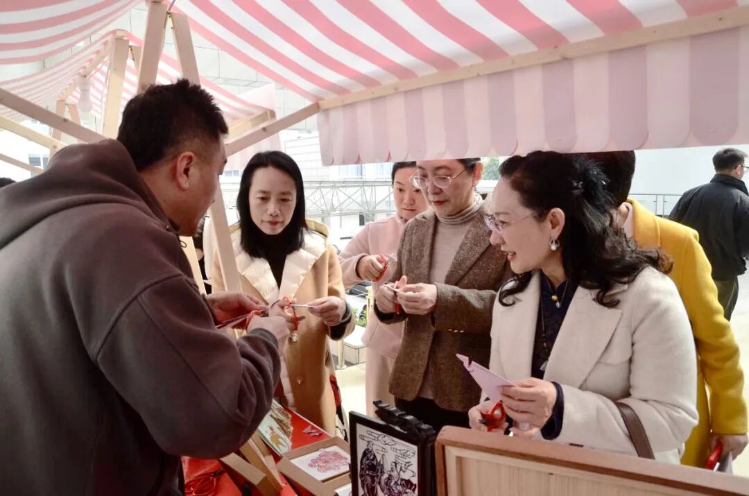 会场外,中国邮政集团有限公司武汉市洪山区分公司设置非遗展示区,带来剪纸、编绳等传统技艺展示,并呈现系列邮政文创产品,将邮戳、绿车、鸿雁等元素融入现代设计。展台左侧的有声明信片打印区人气最旺,传统与科技在此完美融合,为与会者留下独特的节日纪念。